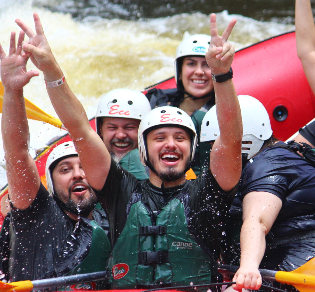 Atividades extras durante o percurso, sendo o Rafting com mais interação na água