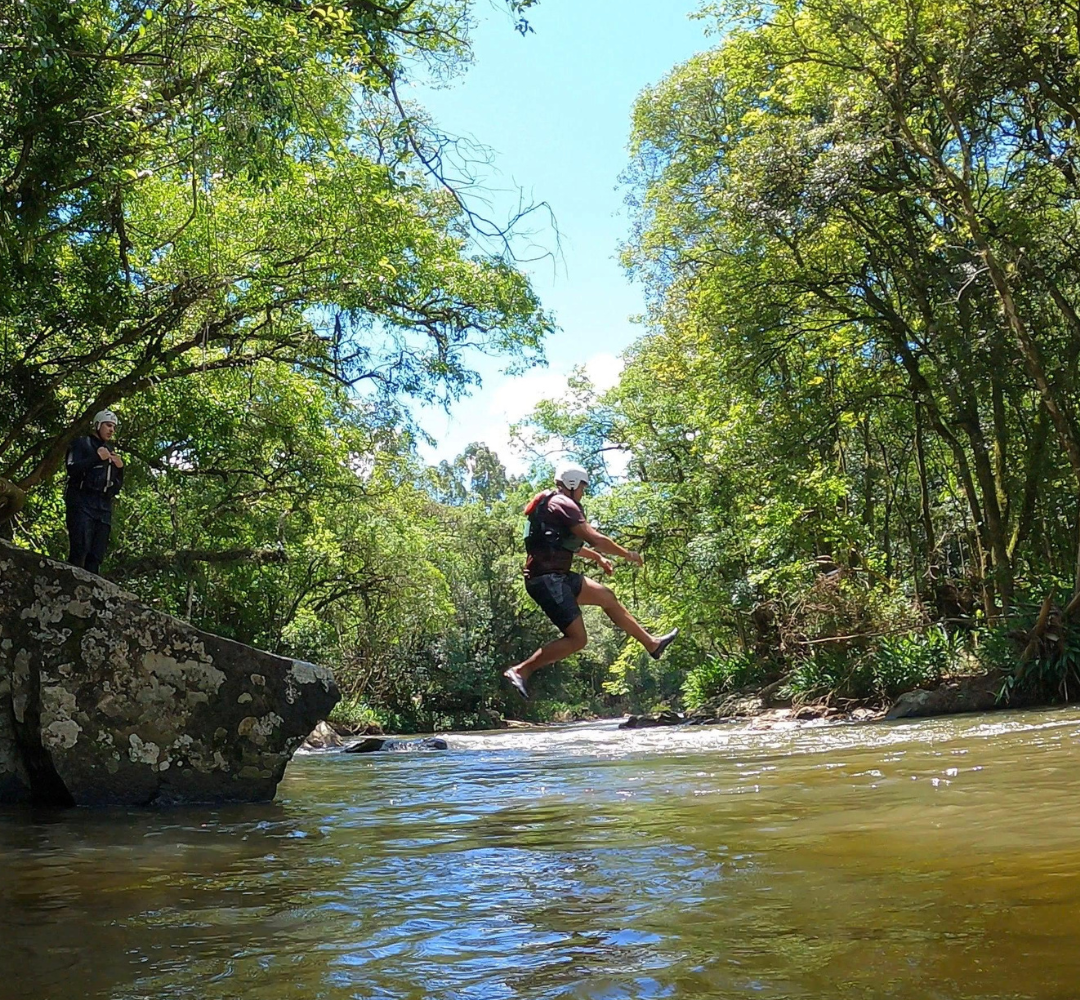 Durante o percurso, você também aproveita momentos para atividades como o pulo da pedra, tobo-água e o surf de bote, garantindo ainda mais aventura no trajeto.